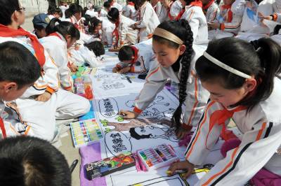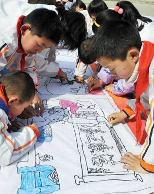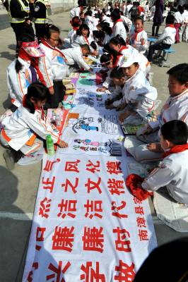 3月17日,学生们正在长卷上绘制”廉画”。当日下午,南漳县实验小学举行廉政文化进校园活动。全校千名师生在长卷上以”树浩然正气,兴廉洁之风,学廉洁文化,做时代新人”为主题进行绘画活动。让孩子们从小养成清正廉洁的好习惯。