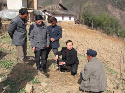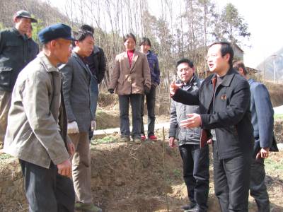 剪枝、打蜡、浆根、培土、浇水、定根,这每一环节都是核桃移栽成活的技术关键。为抓住3月雪后墒情春植这一关键时节,在竹溪县桃源乡笔者看到乡村干部纷纷深入山间、地块,带着《核桃优质丰产栽培技术》手册进行现场讲解,种植要领。帮助农户掌握核桃种植技术要点,确保栽一棵活一棵,目前50000株核桃苗栽种全面开展。图为3月17日,桃源乡党委副书记、副乡长任承明在该乡甘沟子村核桃示范基地为农户指导早实核桃移栽技术要点。据了解,竹溪县桃源乡有着悠久的核桃种植传统,”桃源”这一地名就来源于该乡盛产核桃而得名。尤其是境内产出的”纸壳核桃”因其外壳薄、果实饱满、口感好、色彩鲜而享誉内外。在”十二五”期间该乡不断巩固和壮大桃核产业发展,扩大种植规模,截止目前该乡已种植核桃面积达6500亩,今年新发展1500亩优质核桃基地。张松松