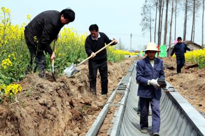 枝江:大力开展小水利建设3月17日,枝江市问安镇龙泉堂村农民正在修建末级渠系。阳春三月,春暖花开,枝江市加大投入,大力开展小型农田水利建设,改善农田灌溉、排渍设施,确保渠系畅通。刘卫东摄
