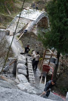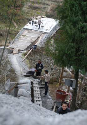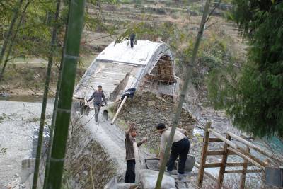 农民筹集资金架设”致富桥”3月16日,宣恩县沙道沟镇四道水大桥施工场地一片繁忙。该村境内一条大河将全村隔成东西两面,群众购买肥料、销售农作物很不方便,该村村民自发集资近20万元,并得到各级政府和部门的支持,在该村境内修建3座桥梁,极大地方便了群众的出行和生产,人们高兴地称之为”致富桥”。签约摄影师李以国摄