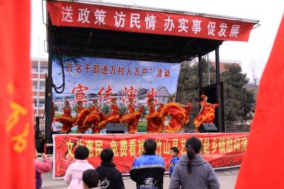 竹山县”三万”活动送戏下乡(图文)竹山县宝丰镇中心学校朱本双电话:13177481456邮编:442213电子信箱:zsbfzbs@126.com3月19日,由竹山县”万民干部进万村入万户”活动领导小组主办、县艺术团承办的送戏下乡慰问巡回演出活动在宝丰镇精彩上演。演员们把城乡一体化建设、村庄环境整治、为民服务全程代理、安全饮水、就医、上学、务工等各项农村政策巧妙地融入节目之中,让观众们在笑声中对竹山县”万民干部进万村入万户”活动有了更深刻的认识。