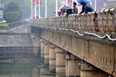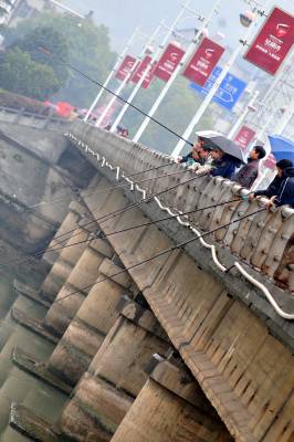 连日来,天气逐渐变暖,在位于长江葛洲坝和三峡大坝之间的黄柏河支流的湖北省宜昌市夷陵区段入江口流域,惊现一场”垂钓大战”,不少渔民拿着渔锚张望等待鱼儿撞到鱼线。 据悉,目前是大鲤鱼沿着河道往上游浅水区觅食交配产卵期,黄柏河河道是鱼儿的必经之路。有网友爆料称,连日来的”垂钓大战”中不断有大鱼上钩,最大的鲤鱼有二十多斤,小的也有五六斤。本报视界网张国荣摄