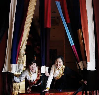 在武汉一家西藏餐厅打工的两位西藏姑娘,叫德庆卓玛(右)和索朗玉珍(左)。经过几个月的工作,已经适应了武汉生活。她们说在这里做服务员跟在家打工没大的分别。她俩做得踏实开心!3月28日是西藏农奴解放日。在这个纪念日前夕我们拍下了快乐的笑脸!