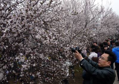 3月20日下午,趁着湖北武汉春雨暂停的间隙,来自省内外的游客,川流不息的慕名来到武汉大学踏春赏樱花。由于受低温天气的影响,武大樱花"含羞"迎周末的游客。待到武大樱花全部盛开时,还要看近段时间,武汉的天气是否"给力"。