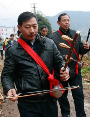 建始:民族计生文化产业,悄然兴起 3月24日,建始县长梁乡江家垭村一青年新婚之时,便请了花骄队娶新娘(图1)。 如今,在长梁乡儿女新婚之时,父母请上村里的文艺表演队演出,吹拉弹唱(图2),以示热闹;独生子女降生,蹦蹦跳跳,花费不多,却增加喜庆气氛(图3)。 婚育喜庆,农家请上民间艺人上到家门来表演,这不仅为左右邻居带来了计生文化享受,很好的营造计宣传生环境(4),与此时同也一些从事民间计生文化活动的农民带来了从业机会。如今长梁乡活跃着60多支这样的计生民间文艺表演队。(唐旻尹元桃)作者单位:建始县长梁乡广播电视服务中心联系电话:15972462065
