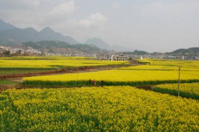 > 建始长梁:万亩油菜花盛开,新农村里品风景