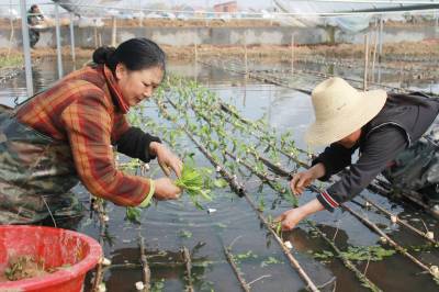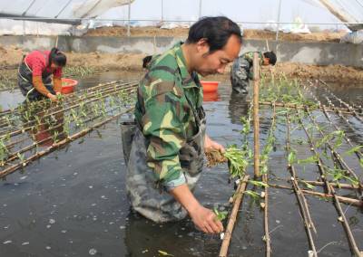 > 孝昌温棚水面空心菜栽种忙