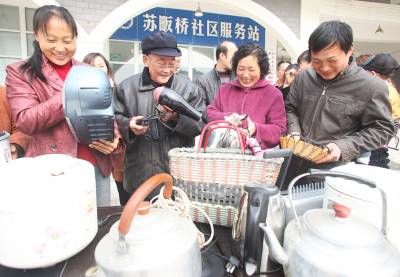 3月31日,荆门市东宝区苏畈桥社区举办的社区”跳蚤市场”环保公益行动正式启动,活动中,居民将家中闲置不用的废旧物品,拿到指定地点进行交换或交易。社区跳蚤市场活动不仅实现可再生资源重复利用,同时能增进社区邻里之间的相互沟通与情感交流。(本报视界网宁新生摄)