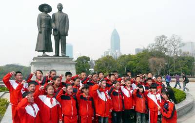 武汉少先队员缅怀孙中山宋庆龄两位伟人的丰功伟绩