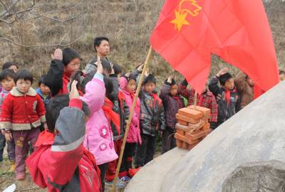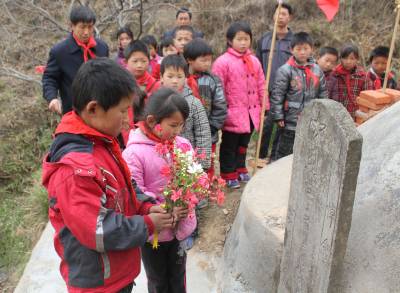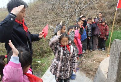 4月2日上午10点20分许,孝昌观音湖陆冲村苗圃希望小学的十多名小学生,在少先队旗下引领下,来到村西的山坳中,集体为王兴烈士扫墓,并举行少先队新队员入队仪式。签约摄影师宋俊初摄