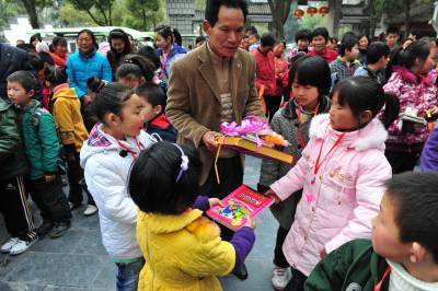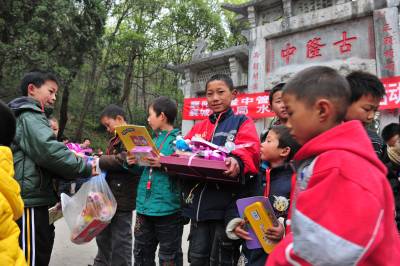 4月5日,隆中管委会请来卧龙镇横岭村、姚河村的40名留守儿童,到景区休闲,游玩。当天,隆中40名儿童和这40名乡村留守儿童结成帮扶对子,向留守儿童赠送书记、玩具、学习用品等,并和他们共游隆中。
