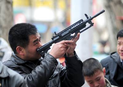 街头玩枪好恐怖 5日下午,黄石市一名男子在该市长途汽车客运站门前的人行道上,拿着一支仿真枪在瞄准目标。乍一看,还以为是真家伙,好让人害怕。黄石市黄石日报摄影部 邱孝威 摄电话:13807232603邮编:435002