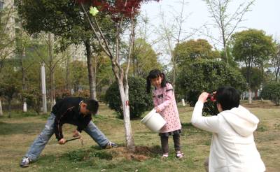 9日,江汉区30多个家庭近百人来到汉口西湖小森林认养红枫、棕榈等树木,一些认养者除了在树上悬挂认养牌外,还自带工具,为树木松土浇水,并拍照留念。张垠摄江汉区园林局430022