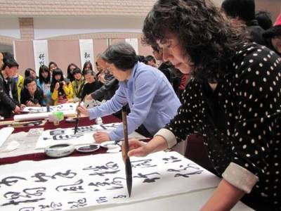 本网讯(通讯员余孝东)4月11日上午,美国华人书画艺术家协会会长王懋轩、副会长施卿柔,美国华人艺术家协会秘书长陈丽英等一行7人到访湖北民族学院,在该校艺术学院开展了一系列广泛而深入的学术交流活动,与师生们”共画”艺术人生。 到访的老艺术家们与学院师生共同举办了书画联展。代表团这次带来了近期创作的书画作品30多件。其作品植根传统,取法纯正,渊源有自。特别是王懋轩教授的作品,诸体皆能,涉猎极广,书风独特,功力深厚,书卷气极浓,深显大家风范。展出现场,老艺术家们也挥毫泼墨,与师生们共同探讨技能笔法等相关问题。 展出结束后王懋轩教授还与该校艺术学院的老师们就艺术创作、艺术教育等问题展开交流研讨,并于11日晚举行了以”中国书画艺术在美国”为主题的个人学术讲座。 据了解,美国华人书画艺术家协会吸收了多名资深旅美书画艺术家,他们都先后举办过个人作品展览,在业界具有较大的影响力。此次回国开展学术活动,旨在与国内艺术界促进交流,推动艺术教育的发展。