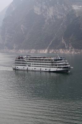 4月15日,长江”总统二号”豪华游轮满载国内外游客正航行在三峡库区秭归县香溪河口。据悉,随着气温回暖,越来越多的游客选择在周末乘船游览高峡平湖风光,生态度假游受到了游客的青睐。本报视界网王爱平摄