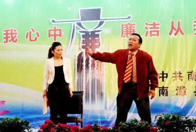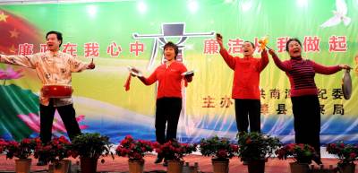 4月21日晚,南漳县”清风廉韵”文艺晚会在该县便河社区举行。这台由该县纪委、监察局联合举办的”廉政在我心中,廉洁从我做起”主题晚会,用党的纪律、身边的案例、特殊的形式教育党员干部和人民群众廉洁自律,遵纪守法。据悉,这台晚会还将到社区、农村巡回演出。