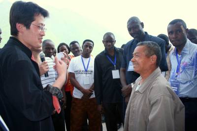 4月24日,由中国国际扶贫中心举办的”非洲法语国家千年发展目标和可持续减贫官员研修班”一行30多人,来到秭归考察学习扶贫开发工作的先进经验和做法。图为非洲法语国家扶贫官员在秭归县归州镇盐关村扶贫搬迁示范户考察。