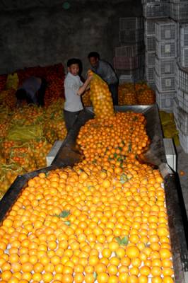 4月24日,在”夏橙之乡”、革命老区秭归县泄滩乡陈家湾村七组水泥公路上,来自河南省的客商周先生正在收购已经成熟的夏橙。当天,村民王正红销售夏橙近2吨,价格为每公斤2.60元,收入达5万余元,由此拉开了今年泄滩夏橙销售工作的序幕。泄滩夏橙现有种植总面积14000余亩,年总产量突破1.4万吨,全乡近万柑农每年夏橙总收入可达4000万元以上,夏橙产业成为该乡柑农致富的主要经济支柱之一。本报视界网王爱平摄