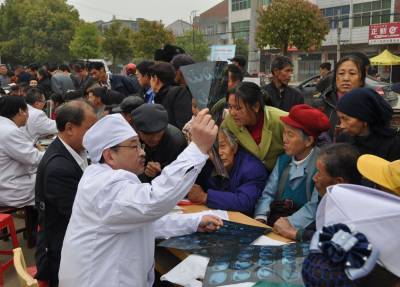 工作队义诊到村受欢迎4月28日,武穴市卫生局”三万”活动工作组干部深入该市大金镇大梅村入户调查走访,慰问贫困户,宣传新农合政策,并组织医务人员开展”送医送药送健康”活动,前来就诊和咨询的村民络绎不绝。当日,共为村民免费体检、义诊3000余人次,提供健康和政策咨询1000余人次,分发健康宣传资料1000余份,免费发放价值4万余元的药品。图为火热的义诊现场。(本报视界网郭占军摄)