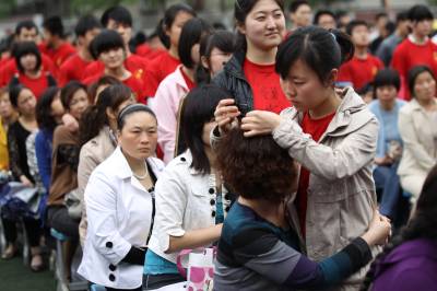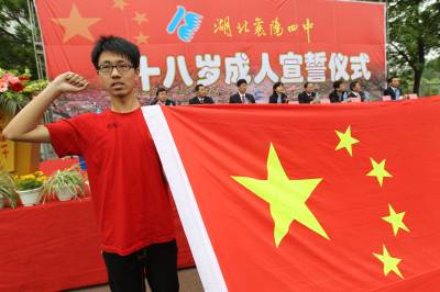 5月2日,湖北襄阳四中的高三学生们在成人仪式上向家长行鞠躬礼。当日,湖北省襄樊四中的1600余名高三学生参加成人仪式,在仪式上宣誓、明志、互勉,宣布步入成年后要更好地履行社会责任,做一个对社会有用的人。