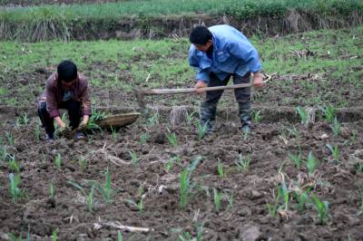10日,竹溪县城关镇郭家梁子村村民抢墒栽植玉米、蕃茄苗。9日晚及10日上午,竹溪县境内普降中雨,缓解旱情。 去冬今春的连续干旱,致使竹溪县100余万亩农作物受旱情况严重:其中,20万亩油菜和小麦减产三成已成定局,60多万亩农特基地部分禾苗枯萎,近8万亩水田面临无水插秧。 目前,该县“三万”工作队及乡镇干部正组织群众抓住当前的墒情,搞好抢种、抢栽、抢管的“三夏”生产,确保夏季农业生产的主动,为秋粮丰收打下坚实基础。