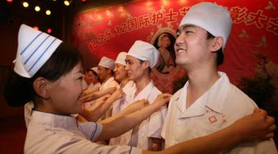 10日,湖北省襄阳市第一人民医院为一批新护士授予燕尾帽,而最抢眼的是其中有4名男护士也一同参加授帽仪式,和其他女护士一样奔赴护理工作岗位,弘扬南丁格尔精神,迎接即将到来的“5.12”国际护士节。