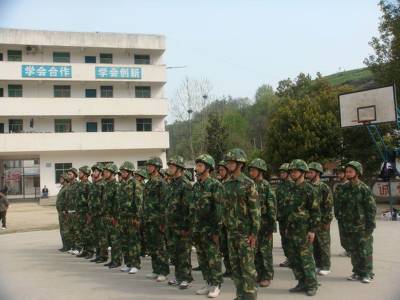 5月11日教师移民内安工作应急分队列队准备到万家坪村移民内安点的场景