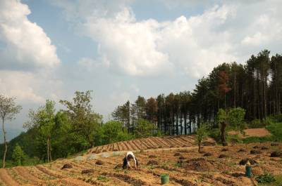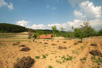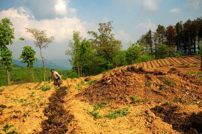 5月8日,巴东县野三关铁场荒村农民正在用农家肥种植辣椒。