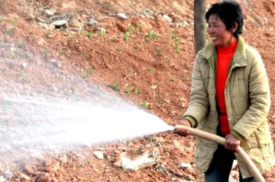 今春干旱,郧县茶店镇二道坡村农民张荣正在引水浇地,全力保春播,最大限度地降低旱灾损失。 程复华 摄 442500郧县国税局