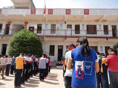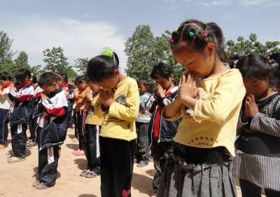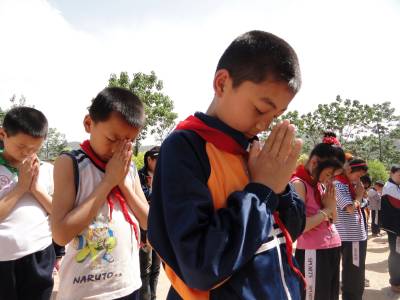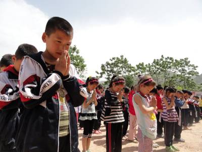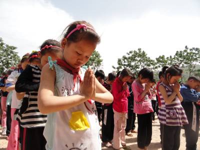 5月11日12:28,学生们在国旗下举行默哀祝福活动。当日是四川汶川特大地震三周年纪念日,也是全国第三个“防灾减灾日”。 郧县刘洞镇各中小学开展“情系汶川 传递祝福”主题教育活动,深切缅怀汶川地震遇难同胞,为灾民祝福。(高超 摄)