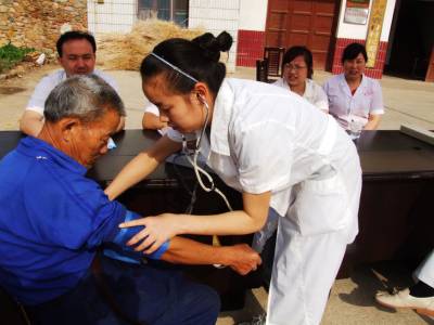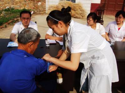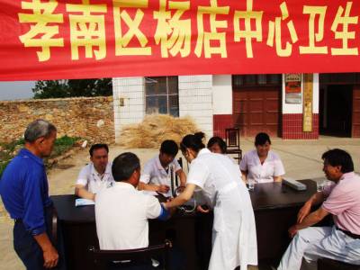 5月12日,是国家防灾减灾日,孝南区中心医院组织专家到双峰山义诊,为群众送医送药。图为专家正在为群众看病。杨金华摄