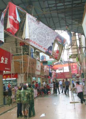 昨日(12日),在江汉区东汉正街综合整治指挥部的督促下,大兴路鼎力鞋市组织人员自拆违章广告招牌46块,面积达300余平方米,从而确保了该市场消防通道的畅通。 张垠 摄 江汉区园林局 430022 注:本人已借调江汉区东汉正街综合整治指挥部