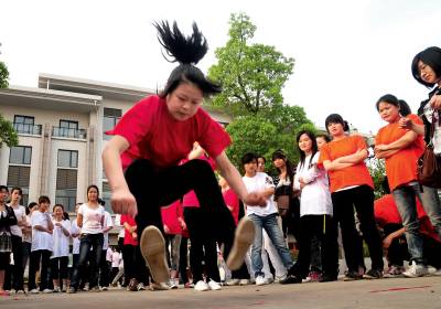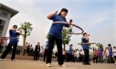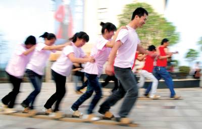 图一:为员工正在进行齐心协力比赛。图二:员工正在进行呼啦圈比赛。图三:员工正在进行立定跳远比赛。