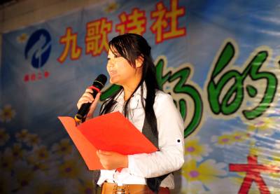 5月11日,湖北省秭归县二中九歌诗社在校园广场隆重举行“青春飞扬”大型诗歌朗诵会。图为该校学生正深情朗诵现代诗歌。 秭归人爱诗天下名,屈原遗风已植入他们的骨髓。近年来,秭归以端午节文化活动为抓手,举办全国诗歌大赛,激发民间诗歌力量,成立民间诗社,在农村、社区、校园和车间举办丰富多彩的诗歌活动,让诗歌回归朗诵时代、让诗歌走近普通大众,以此激发大众对诗歌的兴趣,繁荣诗歌创作。截至目前,秭归已组建萤火虫、兰蕙、楚风、树蕙、天问、杏林等诗社23个,发展会员300余人。(王家满摄)
