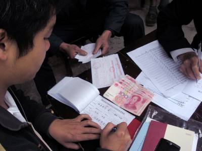 据统计,保护区新农保参保对象为1765人,仅仅两天时间已交款登记参加新农保人数为1218人,占应参保人员的70%。图为参保人员积极参保场景。(段昌林)