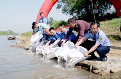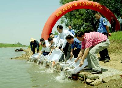 孝感举行鱼类人工增殖放流活动 5月13日,孝感市水产局在孝感市沦河东山头河段实施了渔业人工增殖放流,以增加水产资源,弥补大自然种群不足,维护生态平衡,促进孝感市渔业的可持续发展。当日,共向沦河投放鲢鱼、草鱼、鲤鱼等鱼苗100万尾。 李文勇摄