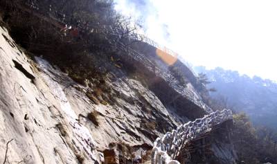 天堂寨风景区位于鄂东罗田东北、大别山主峰南麓的天堂山。天堂寨海拔1729.13米,系江淮分水岭,也是鄂皖接壤处。山石鬼斧神工,不仅有白马峰、相恋一方峰、龙剑峰等奇峰,还有天然画廊、屈原问天、胖见愁等险崖,更有仙人洞、子母龟、双石笋等石景,使人不得不惊叹大自然的鬼斧神工。如今几年不见,天堂山变化非常之大,景区各项基础建设更加完善。特别是通过引资,还建有索道,更方便安全。令人称奇的是,依着陡峭山岩而新建的人行道(我们简称“天路”)正在抓紧后期施工,这项工程完工后,不仅方便游客登山,改善上下交通问题,而且必定成为景区一道奇观风景,更重要必定成为天堂寨发展之路,旅游之路,富民之路。