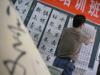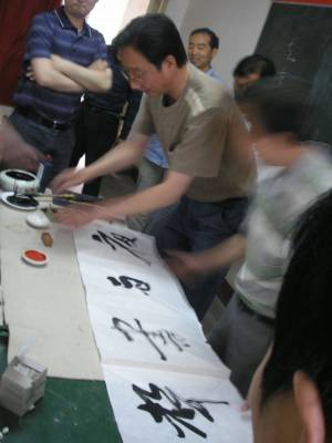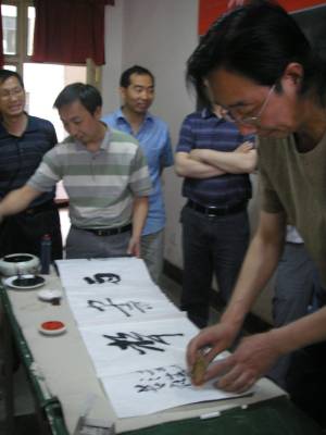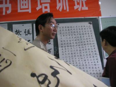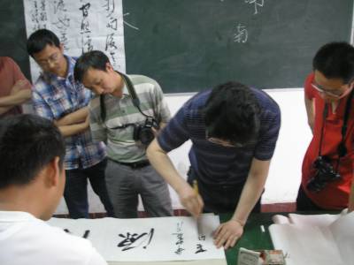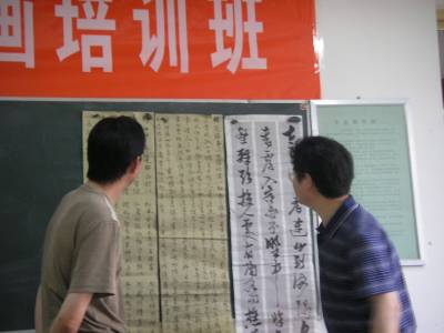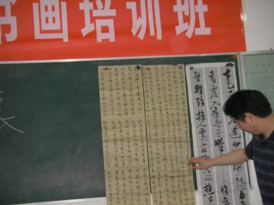 5月13日,郧县书画家给书画喜好教师做现场培训。为纪念中国共产党成立90周年,该县教育局组织教师用中国传统书画作品创作、展览庆贺。成立教工书画培训班,特邀请该县书画家协会专家零距离交流,以提升作品质量和艺术修养。本报视界网:曹相聪 摄