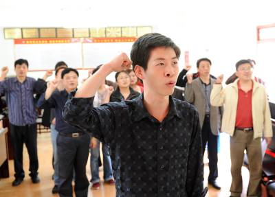 5月14日,保康县医疗保险局利用双休时间邀请县医院、县中医院专家来到城关镇刘家坪村,为村民进行义诊并免费提供价值4000元的医药用品,全体职工自发捐款5000多元为该村十七家低保户、特困户送来了大米和食用油。当天,医疗保险局职工张俊雄在村委会里进行了新党员入党宣誓。 柳虎 摄