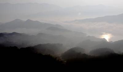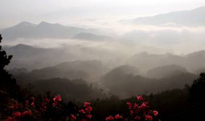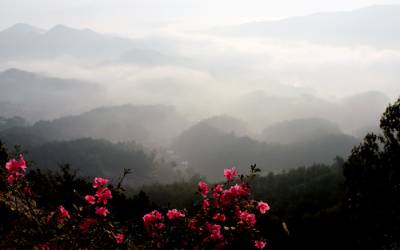 天堂湖位于湖北黄冈罗田九资河和大地坳之间。这是一个长约15华里,宽约1华里的人工湖。远远望去,整座湖就像一块巨大的长方宝镜镶嵌在薄刀峰、天堂寨、笔架山等诸峰脚下,亦如蜿蜒的银带飞舞在群山之中,勾勒出一幅山水掩映、云雾缭绕、村舍错落的风景画。