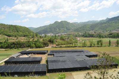 保康县农业局、县食用菌办公室扶持的50万袋袋料食用菌生产基地在该县歇马镇河东村建成。共建成140个食用菌大棚,年可实现销售收入400万元。 (本报视界网 陈泉霖 摄)
