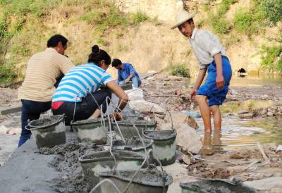筑坝截流蓄水抗旱 15日郧县刘洞镇干群正在修建拦河低坝,枯水期蓄水灌溉,汛期河水可以过坝泄洪。面对延续的干旱,该镇党委政府率领村民积极应对,一边忙夏收、播种,一边想办法节水抗旱。(郧县刘洞镇中心学校 高超 摄 邮编442525)