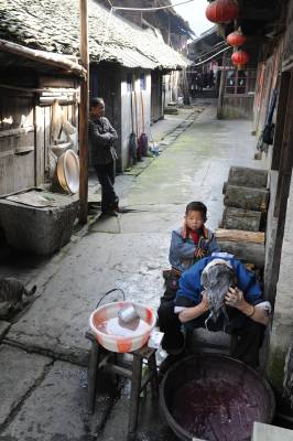 百年老街——庆阳街,一条不老的街。始建于乾隆年间,属于木质结构凉亭式古街道。这条老街长约380米,古代土家族生活遗风延续至今。有专家考证后称,庆阳凉亭老街具有重要的历史价值、文化价值、旅游开发价值和建筑学价值。它保持着民族生活的原真性,是研究民族建筑文化不可多得的瑰宝,是研究我国民族地区的商业文化、民俗风情、社会交往、城市与建筑发展史的“活化石”。 (杨发维摄于2010、2011年)