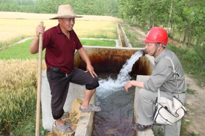 紧急抢修保灌溉 5月17日,谷城县冷集供电所农电工在查看刚修好的上集村泵站提水情况。当日下午3点40分,该所接到上集村3组提水泵站报修的电话,农电工立即骑车前往。半个小时时间,更换了氧化的接线装置,保持了103亩稻田抗旱的继续进行。 本报视界网马明刚摄