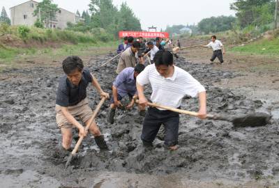 朱河:不舍不弃抗大旱 入春以来,湖北省监利县遭遇历史上罕见的特大干旱,境内大小河流干枯,早稻干死,渔池干涸,全镇受灾农田达90万亩,受灾渔池30万亩。面对如此严峻的局面,监利县委、政府号召全县人民树立打持久战的思想,不等不靠,不舍不弃,全面掀起抗旱救灾高潮,全镇投入劳力36万人,组织抗旱突击队120个,疏挖支干渠道500多万米,打竹井1800多口。力争把灾害损失减少到最低限度。 刘锋锐 周立平摄 电话:13886611500