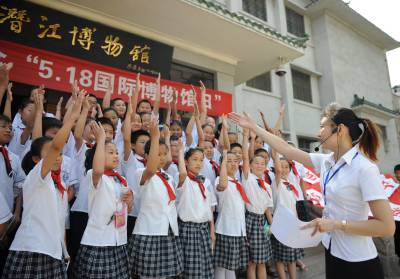 湖北秭归:外国游客乐游屈原故里