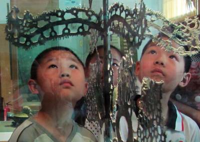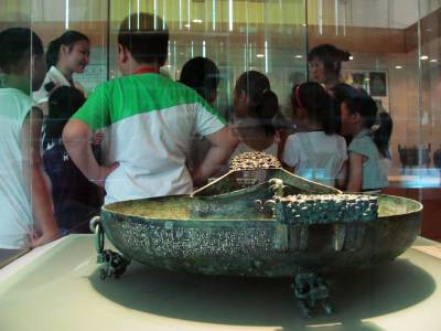 2011年5月18日,湖北省十堰市郧县实验小学的学生在郧阳博物馆,参观南水北调首期文物展。当日为国际博物馆日,今年博物馆日的主题是“博物馆与记忆”。南水北调中线工程郧县首期文物展于2007年在郧阳博物馆开展。自2004年以来,共有来自国内外的48支考古队在南水北调中线工程郧县淹没区开展文物抢救保护工作,目前展出郧县境内考古工地出土的珍贵文物有350件。(曹忠宏摄)