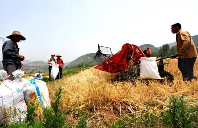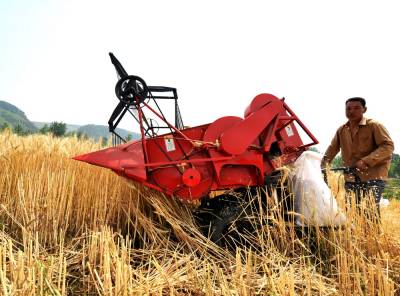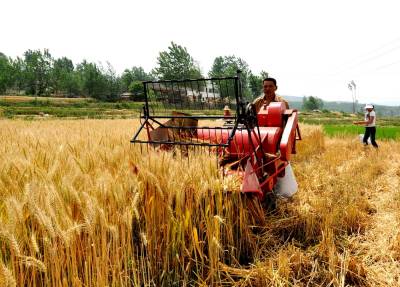 5月18日,郧县安阳镇程营村二组农民柯有德正在自家的田里手扶新购的小型联合收割机抢收小麦。近年来,该县有效地改善了农业生态环境,完善了农田水利设施建设。不断加大科技推广应用力度,随着国家对粮农综合补助的进一步落实,极大地调动了山区农民种粮的积极性,同时,一些省时、省力、省钱的先进适用小型农机具开始走俏山乡。本报视界网吴成林 摄