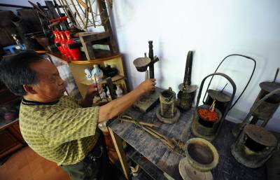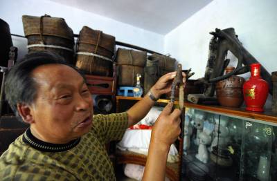 今年初,自觉得“藏品”已够建馆之需的吴云梦请来工匠,开始按照当地的建筑风格,在209国道旁修建“吊脚楼”式的展馆。而吴云梦则开始针对每件展品的由来、用途编写说明,“博物馆”建成后将免费对参观者开放。本报视界网 宋文 摄
