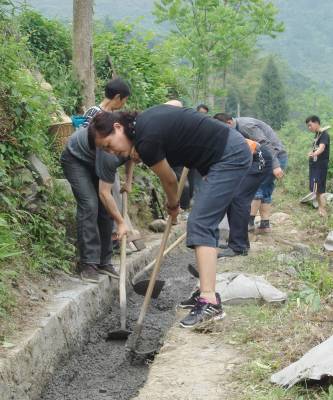 5月13日,宣恩县扶贫开发办公室干部职工正在高罗乡龙河村与群众一起整修水渠。 该单位把支持联系村群众的抗旱保春耕工作作为当前“三万”工作的重中之重,投入5万元帮助龙河村维修1700米水渠,解决了582亩的农田灌溉问题。 本报视界网 李以国 王博 摄